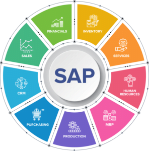 يحتوي نظام ساب علي عدد كبير من الموديولات المتخصصة والتي تغطي مختلف جوانب إدارة المؤسسات، ومن بين هذه الموديولات: